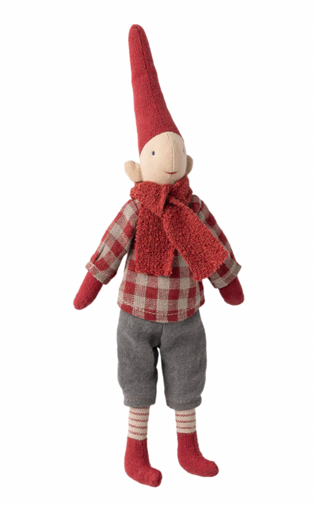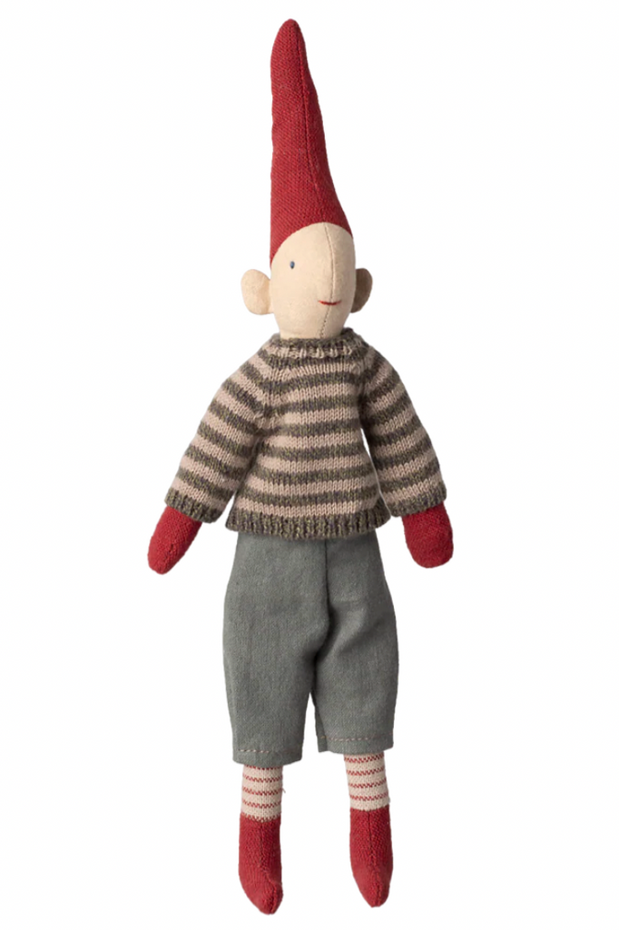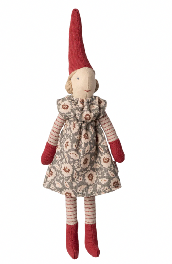 Mailegs pixy collection contains many different styles - all dressed up in nice Christmas clothes made of exclusive materials. They are adorable and can be mixed and matched across sizes and collections. Size 1 has magnet in hands and left foot.